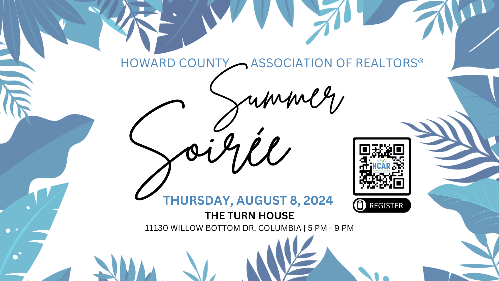 This year's Summer Soiree is being held on Thursday, August 8th from 5PM - 9PM at The Turn House in Columbia! Register today