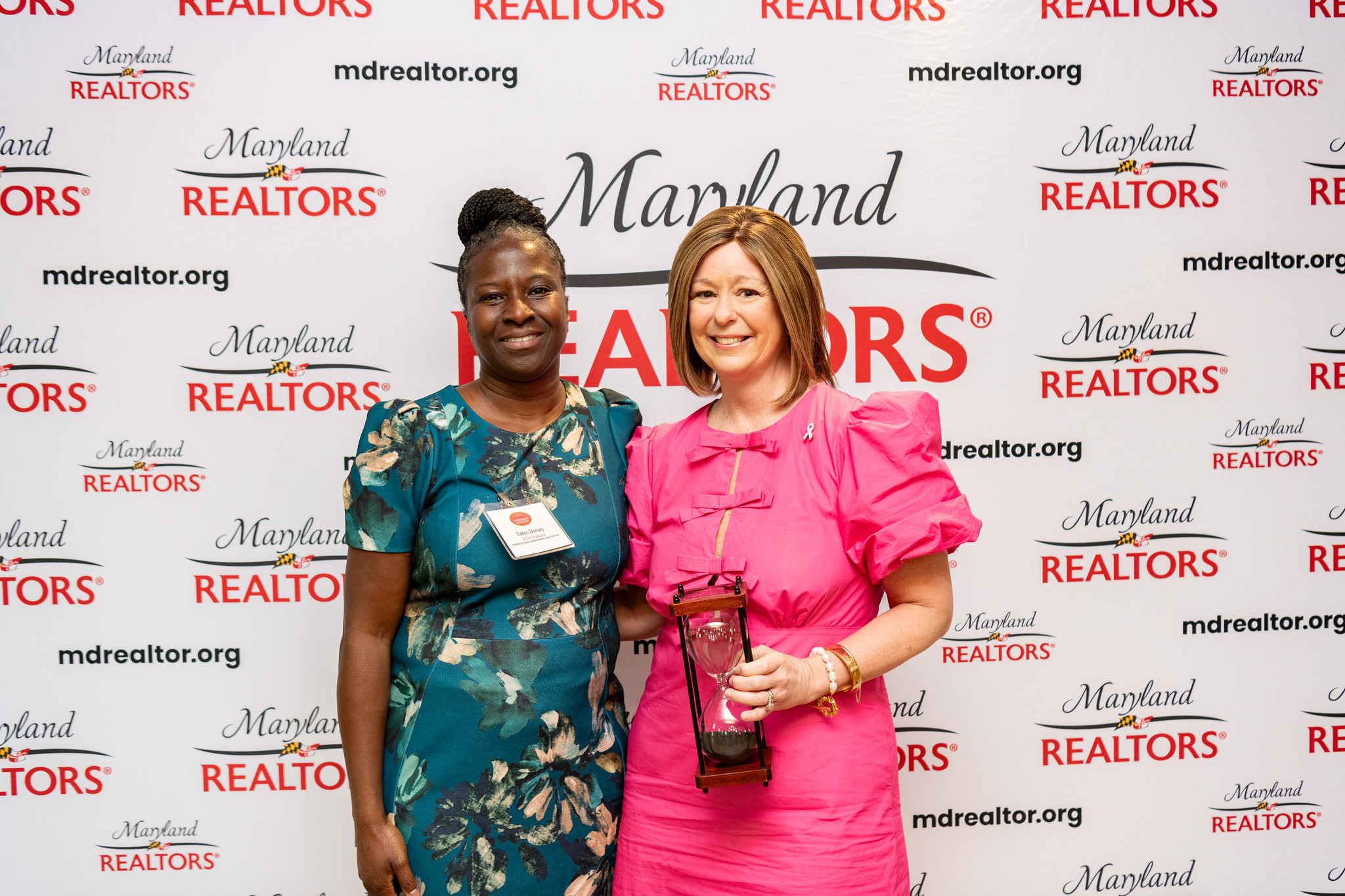 REALTOR® Michelle Hybner is presented the David E. Maclin Humanitarian Award. (From left) Terez Dorsey, 2024 Leadership Academy Graduate; and Hybner.